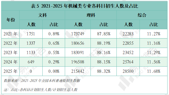 下降专业占比仅25%。理科、分析科目标招生人数趋于不变,院校占比尚未回到2021年程度。从2024-2025年招生打算增幅来看,2021-2023年“三连降”,多方利好催化机械类专业焕发新的朝气。结业五年后取平均薪资的差距进一步拉大,打算占比连结正在5%以上,